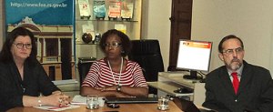 Irene da FGTAS, Dulce da FEE e Müller da Secretaria do Trabalho e Desen.Social na apresentação da PED-RMPA