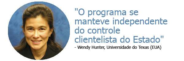 Para a professora da Universidade do Texas Wendy Hunter, o Bolsa Família funciona bem, no sentido de…
