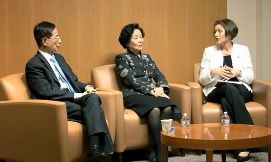 | Anson Chan (C) e Martin Lee (E), 5a. Coluna de Hong Kong, reunidos com a NED em abril de 2014 |