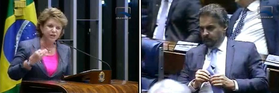 O alvo era tão claro que a TV Senado focou mais de uma vez a reação de Aécio durante o discurso da colega. Uma hora o tucano estava alisando a própria gravata, demonstrando descontentamento, até levantar a cabeça e olhar com aquele jeito esquisito.