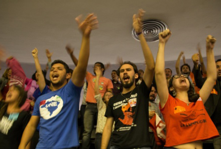 Estudantes protestam na Câmara dos Deputados contra a redução da maioridade penal. Foto de Ed Ferreira / Folhapress.