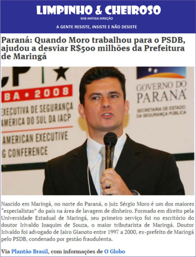 Esclarecimentos: Sérgio Moro entra com ação contra o blog Limpinho & Cheiroso