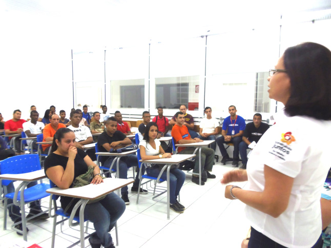 Presentes na ocasião estiveram o diretor da unidade do Senai/Cataguases, Juarez Leonardo Boari, Sebastião Rui de Almeida Filho, representando o secretário municipal de Assistência Social, Vanderlei Teixeira Cardoso, Murilo Matias, coordenador da Proteção Social Básica no município, Janete Garcia, coordenadora do Acesssuas, professores e as pedagogas do Senai, Sandra Mara Dutra Carvalho e Édina Rosária Silva Oliveira. Os alunos assistiram à apresentação das regras gerais estabelecidas para o desenvolvimento do trabalho.