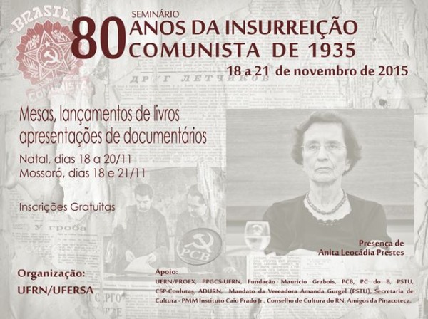 Entre os dias 18 e 21 de novembro, as cidades de Natal e Mossoró serão palco do “Seminário 80 anos da Insurreição Comunista de 1935”.