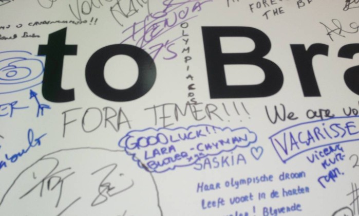 Na manhã deste sábado, uma mensagem chamou a atenção de quem passou pelo mural dos atletas. Entre dezenas de recados, estava escrito, em letras garrafais: “Fora Temer”. A mensagem sobre o presidente interino, Michel Temer, faz referência ao golpe.Nos recados os atletas agradecem a recepção e apostam o Rio-2016 ficará marcado como melhor Olimpíada