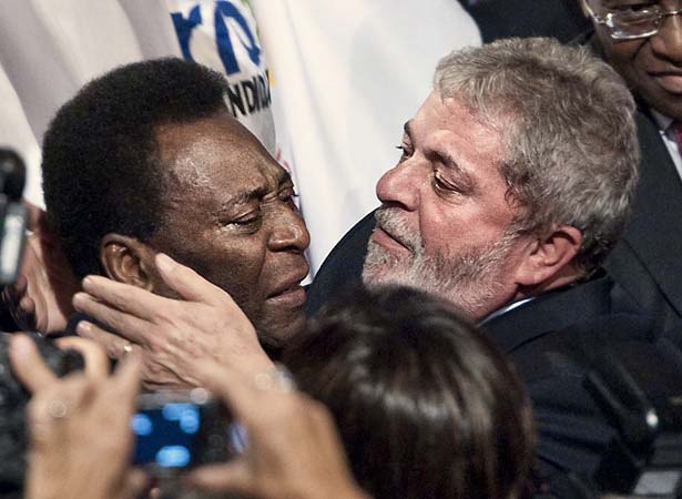 Lula e Pelé comemoram a vitória do Rio em Copenhague