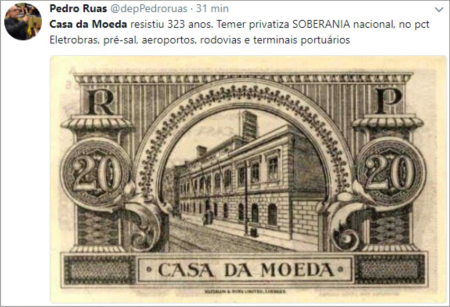 Nem os EUA, país idolatrado pelos coxinhas, tiveram coragem de privatizar agência que imprime cédulas, mas aqui farão isso com Casa da Moeda.