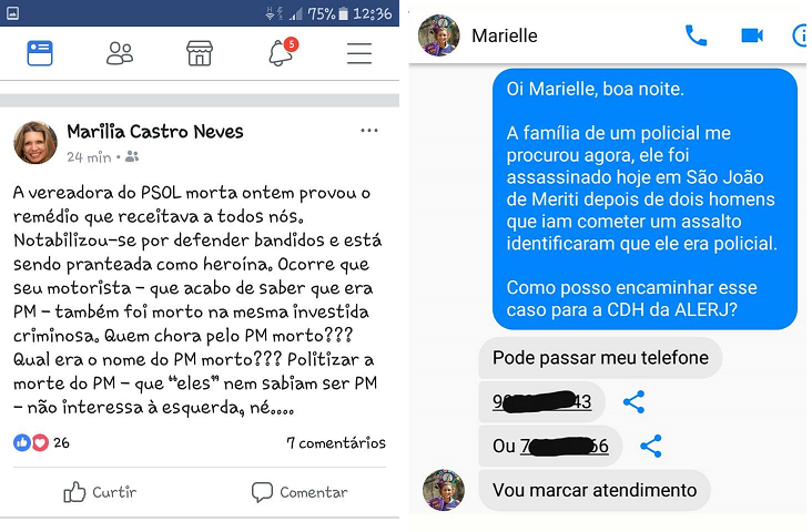 “A questão é que a tal Marielle não era apenas uma ‘lutadora’, ela estava engajada com bandidos! Foi eleita pelo Comando Vermelhoe descumpriu ‘compromissos’ assumidos com seus apoiadores. Ela, mais do que qualquer outra pessoa ‘longe da favela’ sabe como são cobradas as dívidas pelos grupos entre os quais ela transacionava”, escreveu.