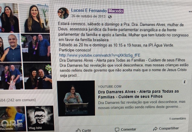 Também não consta sua ida a Curitiba, em outubro de 2013, para pregações evangélicas, devidamente anunciadas no Facebook. Podem ter sido custeadas por terceiros. Mas não há como afirmar isso. Procurada, como se explicará abaixo, a pastora não retornou ao Blog.