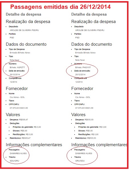 Entre elas estão despesas de passagens aéreas ou alugueis de locomoção (que pode incluir passagem ou aluguel de aviões) e emissão de bilhetes aéreos. Isto mês a mês. Em cada mês há o registro das passagens emitidas na cota do parlamentar. É preciso que se abra uma a uma para saber quem se beneficiou daquela passagem e qual o percurso feito. O site sequer diz a data da viagem, mas sim a da emissão do bilhete.