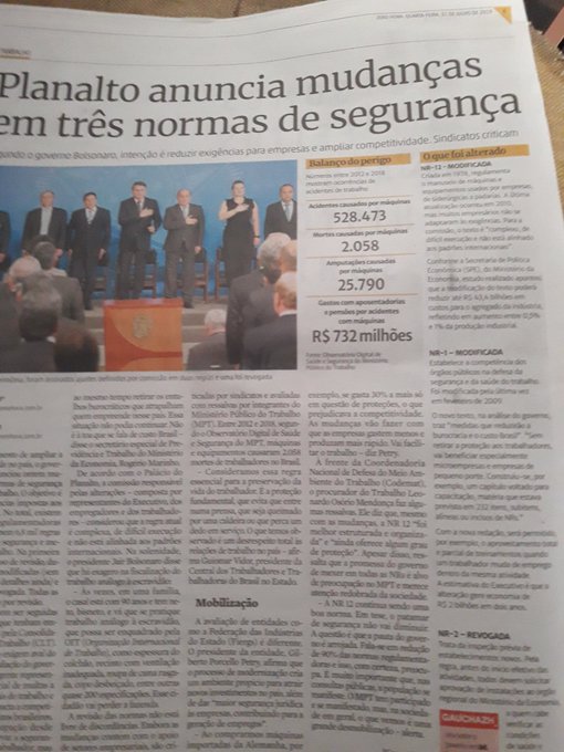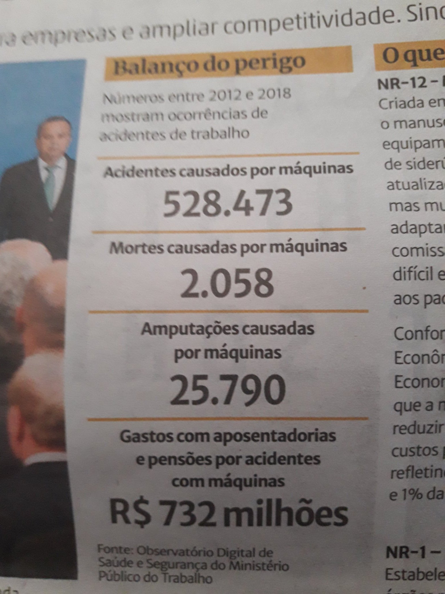 Mesmo com as NRs ainda em vigência, o número de mortos e acidentados no trabalho no Brasil é astronômico, como mostra a mesma matéria da Zero Hora