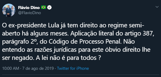O Supremo Tribunal Federal poderia recuperar parte de sua dignidade e credibilidade fazendo o óbvio: o que diz Flávio Dino no twitter e reproduzo acima.