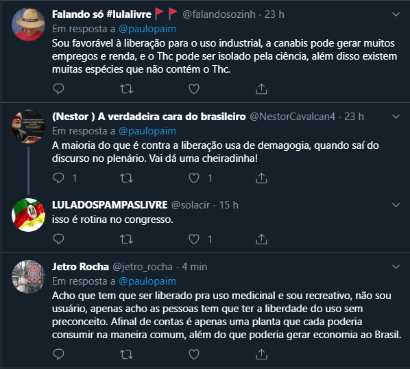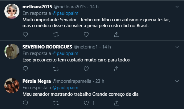 Muitos tuites apoiando a medida se seguiram a tuite do Senador Paim comunicando a novidade. Seguem alguns exemplos: