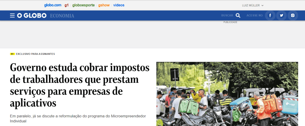 A equipe econômica do governo planeja cobrar impostos de quem trabalha por conta própria e presta serviço para aplicativos de transporte, como Cabify, Uber e 99. De acordo com o jornal O Globo, outras plataformas que se conectam com consumidores também devem ser enquadradas na proposta. A publicação destaca que a área econômica está preocupada com as contas da Previdência, uma vez que trabalhadores como motoristas, web designers consultorias e prestadores de serviços domésticos não contribu… – Veja mais em …