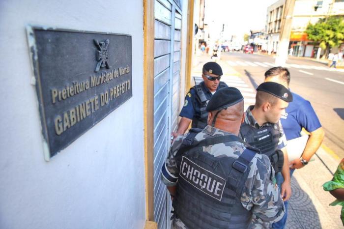 Mandados foram cumpridos no prédio da prefeitura na manhã desta quarta-feiraLauro Alves / Agencia RBSO Tribunal de Justiça do Rio Grande do Sul (TJ) determinou a suspensão do mandato do prefeito de Viamão, André Nunes Pacheco (sem partido), de cinco secretários municipais (veja a lista abaixo) e do vereador Sergio Angelo (PV) pelo prazo de 180 dias. Neste período, eles ficam proibidos, inclusive, de ingressar no prédio da prefeitura e de manter conversas entre si ou com testemunhas do processo.Investigação do Ministério Público (MP) apontou para o possível envolvimento do prefeito em irregularidades em contratos de prestação de serviços para a administração de Viamão. Uma operação do MP está em curso, na manhã desta quarta-feira (12), para garantir o cumprimento das decisões.