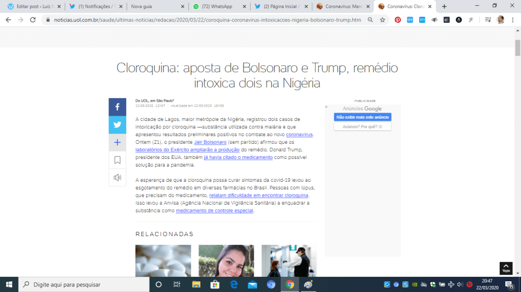 Não dá pra esperar nada do Governo Bolsonaro. Vai ser um genocídio se depender deste governo que fez lei para impedir que Governadores e Prefeitos façam o que o Governo Federal deveria estar fazendo, ou seja coordenando nacionalmente as ações.