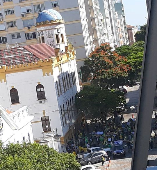 No Facebook do Cristiano Goldschmidt vejo a foto que constata mais uma barbaridade dos Bolsonaristas. Hoje em frente ao QG do 3º exército se aglomeraram pra pedir a reabertura de tudo e a imediata instalação da Ditadura Militar.