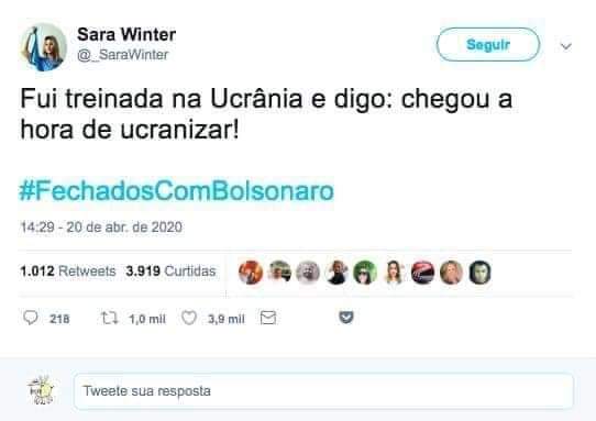 Sara Winter começou a falar em “ucranizar” o Brasil, e o deputado Daniel Silveira, um PM do Rio de Janeiro, falou também em “ucranizar o Brasil.