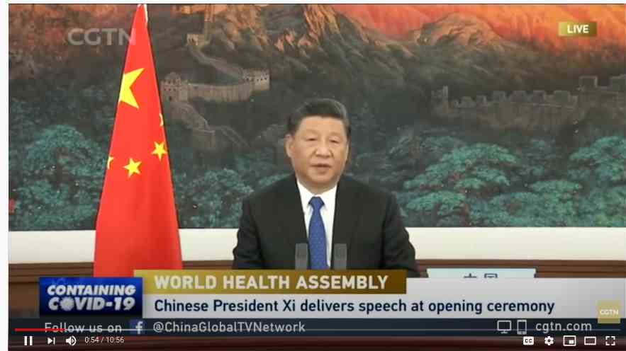 O presidente chinês Xi Jinping proferiu na segunda-feira um discurso via link de vídeo em Beijing na abertura da 73ª Assembleia Mundial da Saúde.