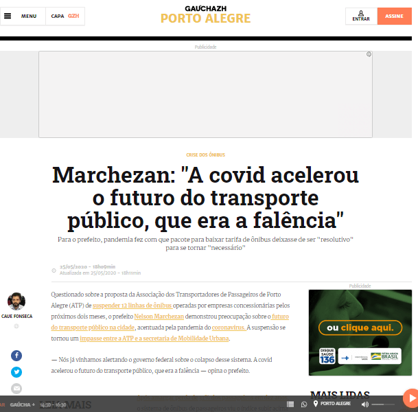 Lembra do Prefeito querendo autorizar a demissão dos Cobradores de ônibus e outras benesses pra aumentar o lucro das empresas de ônibus? Pois o Prefeito voltou a carga. Este negócio de empresas anunciarem que vão abandonar linhas de ônibus pra bairros de trabalhadores e que vivem atopetadas de gente e portanto lhes dão um bom lucro em tempos normais, é mais uma jogada desta gente que atua em conjunto com o Prefeito. Eles querem aumento da passagem agora, pra que quando votarmos a normalidade, eles ganhem mais dinheiro ainda. Nunca esquecendo que Porto Alegre tem a passagem mais cara do Brasil.