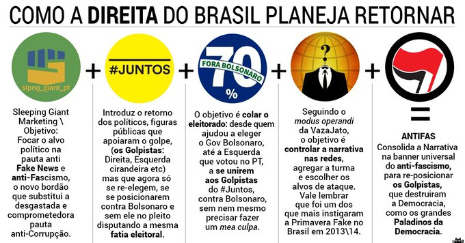 Em artigo, Merval Pereira, um porta voz do golpismo, relata o que a @GringaBrazilien já tinha demonstrado em um Card pra explicar por como Lula, ela também defendia que não se deve pegar o 1º ônibus. Mas muita gente pegou. Vários assinaram manifesto patrocinado por banqueiros, outros aderiram a uma hastag que um banqueiro “moderno” lançou “despretensiosamente” segundo palavras dele num encontro com o PT; outros saíram a compartilhar feitos do “anonymous” supostamente contra Bolsonaro, mas que é a mesma turma que deu origem ao trágico junho de 2013 pra democracia e pro Brasil. E muitos colocaram em seus perfis a marca de um outro grupo, que estava lá, também carimbando aquele junho de 2013.