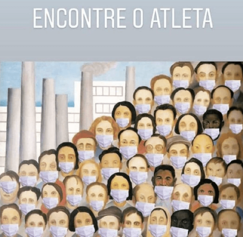 (Em meme que viralizou nas redes sociais, internautas ressignificaram a obra “Operários”, de Tarsila do Amaral, para ridicularizar a pouca habilidade do presidente do “histórico de atleta” com o uso de máscaras. Fonte: Redes sociais)