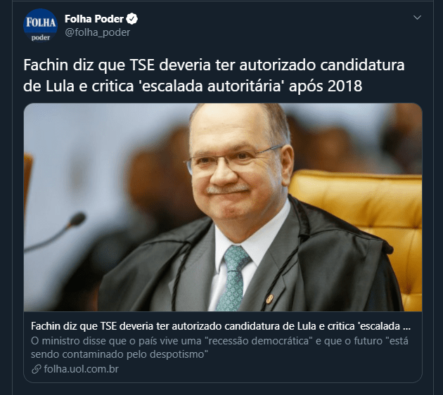 A pergunta é pertinente, já que um dos envolvidos diz que Lula deveria ter concorrido as eleições. Se concorresse, ganhava. E o Brasil não estaria na nhaca em que esta. Só em 2018 o STF foi conivente com crimes que agora começam a aparecer nítidos. 1– O STF bancou a canalhice de Moro de manter Lula preso quando O Desembargador Favreto, dentro da Lei, o havia liberto; 2 – Impediu Lula de Concorrer; 3 – Permitiu que Moro e a PF vazassem a delação bem premiada e totalmente falsa do Palloci; 4 – O TSE e o STF não deram bola pras denúncias do crime de caixa 2 bancando o crime de fake news das redes bolsonaristas. Fazia tudo parte do Golpe. Lembra aquele Senador Jucá falando do golpe “com o STF…com tudo”? Pois é.