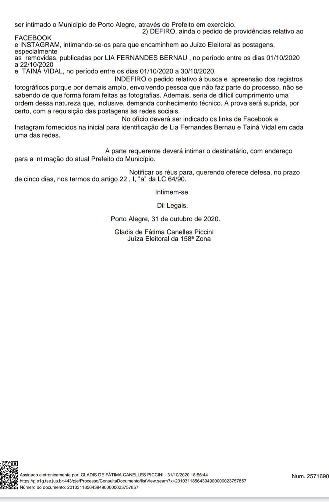 PORTO ALEGRE: JUIZA ELEITORAL DETERMINA SUSPENSÃO DA ENTREGA DE “KITS BEBÊS”. DECISÃO PEDE AINDA QUE SE TOMEM PROVIDÊNCIAS QUANTO ÀS POSTAGENS DAS REDES SOCIAIS DA SERVIDORA LIA BERNAU E DE TAINÁ VIDAL, ESPOSA DO PREFEITO NELSON MARCHEZAN