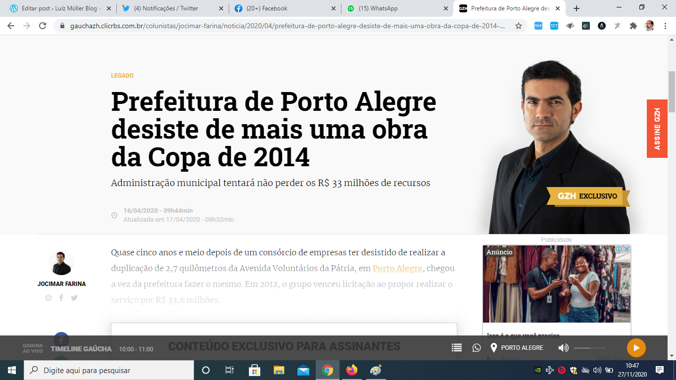 Dinheiro tinha. E muito. No caso, eram 33 milhões de reais, como mostra matéria da Zero Hora. Dinheiro de sobra e competência em falta. Ou qual outra explicação seria possível pra tanto dinheiro devolvido? Há também a Avenida Tronco, a Orla, cujas obras ficaram pra posteridade, até hoje não concluídas,. Aliás, a 1ª etapa das obras que eram pra ter sido completadas antes da Copa de 2014, o Marchezan foi inaugurar em…2020. A 1ª Etapa de todas que deveriam ter ficado prontas em…2014. A gestão era Fortunatti/Melo. E tinha a grana pra fazer. E não fizeram. Como é que agora, sem o dinheiro, muito do qual já foi até devolvido, o mesmo Melo faria?