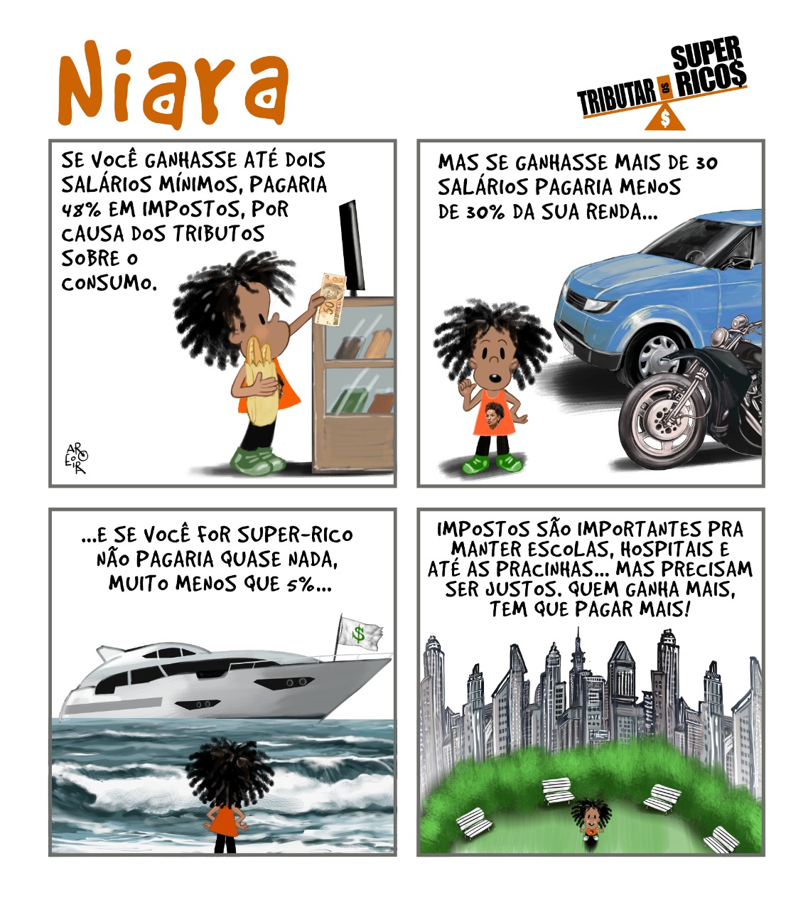 🤷🏾♀️ Niara não se conforma que o Brasil seja o segundo país que mais concentra riqueza no mundo. Tributar os super-ricos é uma das formas para viver num país mais justo.