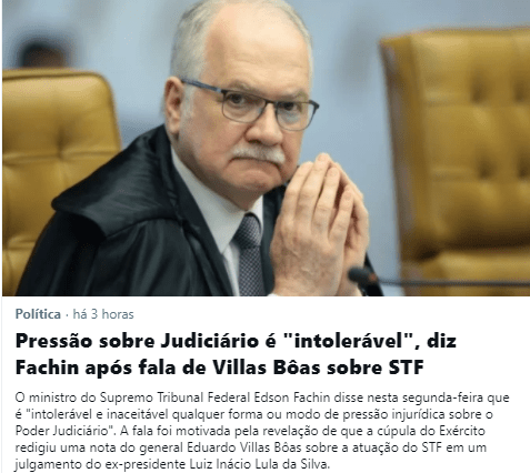 Fachin, tira a toga da hipocrisia e cumpre teu papel de defensor da Constituição contra os que atacam a nação. Ultima chance pra ti e ultima chance pra nós vermos a Nação se reerguer nesta geração.