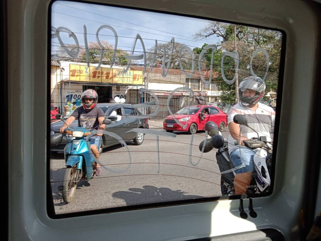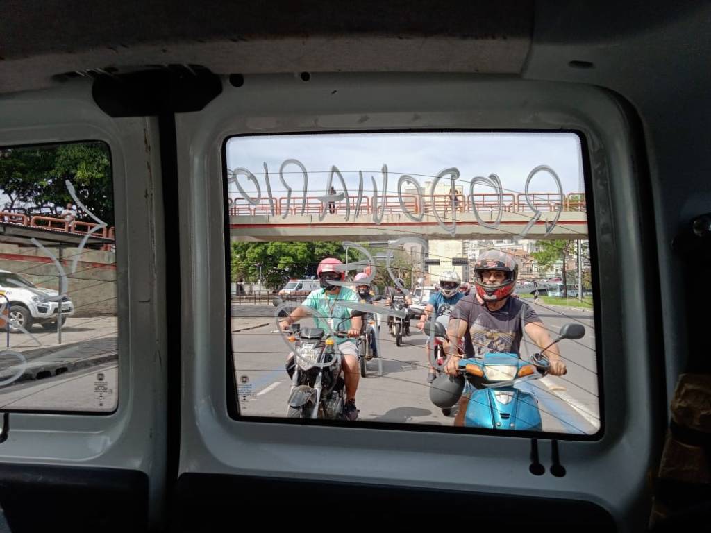 Em carreata, muito carros e motos com cartazes lembravam o luto por trabalhadores do setor que faleceram devido a doença e pediam a vacina para a categoria circularam pelas ruas da Capital, como na Avenida da Azenha (foto).