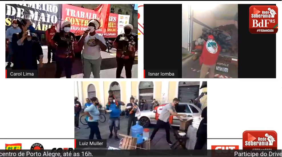 Solidariedade não é dar o que sobra. É dar o que se tem, foi a palavra dita por Cedenir de Oliveria, em nome do MST no Largo Glênio Peres, ao chegarem os vários caminhões cheios de alimentos, que se dirigiram a diferentes comunidades das periferias de Porto Alegre: “A crise é deles, mas quem paga são os trabalhadores. É preciso transformar a fome em rebeldia para derrotar esse governo genocida.”