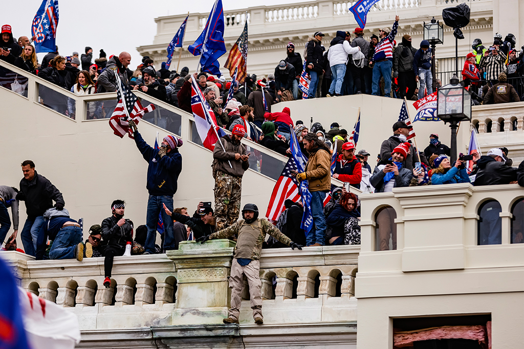 Donald Trump, referência da extrema direita mundial e de Bolsonaro, flertou com a tentativa de um golpe nos Estados Unidos. Sem qualquer prova ou indício, Trump questionou o processo eleitoral americano, não reconheceu a ampla vitória de seu concorrente, Joe Biden, e pressionou autoridades de alguns colégios eleitorais. Em um último ato de desespero, incentivou a inédita invasão do Capitólio, mas a solidez das instituições norte-americanas prevaleceu e a