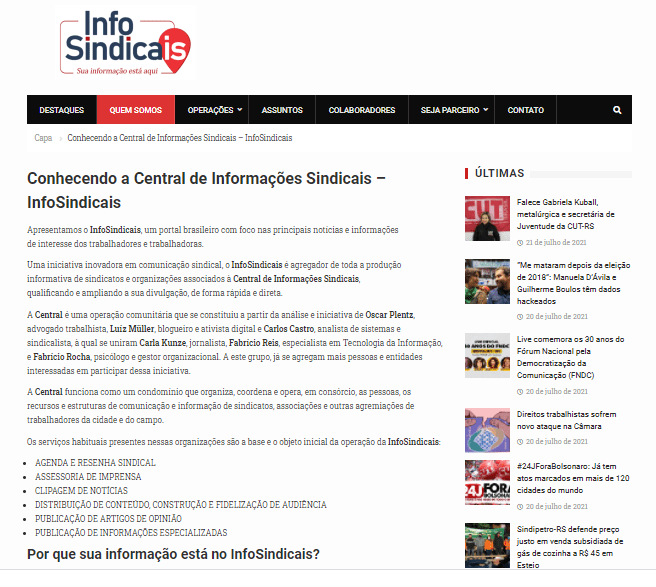 Com metodologia colaborativa e solidária, INFOSINDICAIS – Central de Informações Sindicais é um Portal Agregador para ampliar o Alcance da Comunicação dos Sindicatos, independente da Central Sindical a que pertençam.