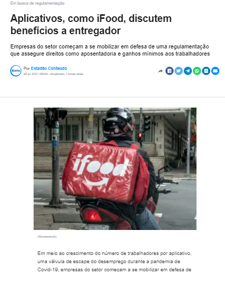 O iFood é a primeira empresa a sair, individualmente, em defesa da regulamentação da profissão e com propostas, embora o debate esteja aquecido também entre as demais plataformas.