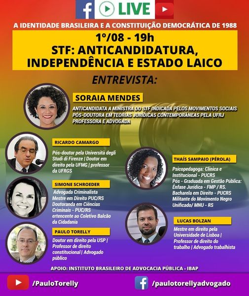 Assista Live de Paulo Torelly e Juristas com Soraia Mendes e leia matéria da Associação Brasileira de Juristas pela Democracia, que publico logo após o vídeo