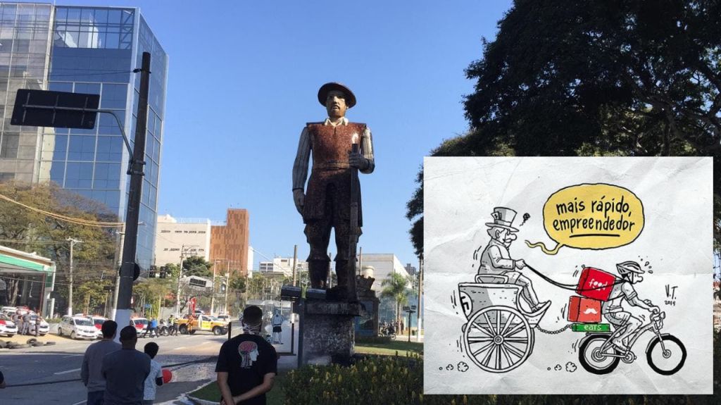 Será que queimando uma estatua do Borba Gato o “galo” conseguiu convencer algum entregador moto boy de que ele não é empreendedor, mas sim um trabalhador super explorado? Ou pelo contrario, ele conseguiu fazer muitos do povo acreditarem que moto boys são voluntaristas mesmo e estão como estão justamente por causa disto?