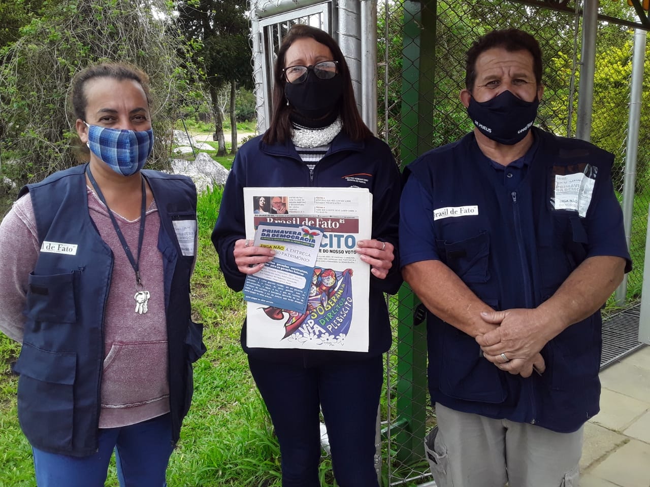 Tendo em mãos Edição Especial do Jornal Brasil de Fato RS sobre o Plebiscito e as absurdas privatizações que vem sendo promovidas por Eduardo Leite, lideranças, trabalhadores e jovens tem criado COMITÊS nas Cidades e realizado mutirões e Bancas para divulgar e chamar a adesão ao Plebiscto.