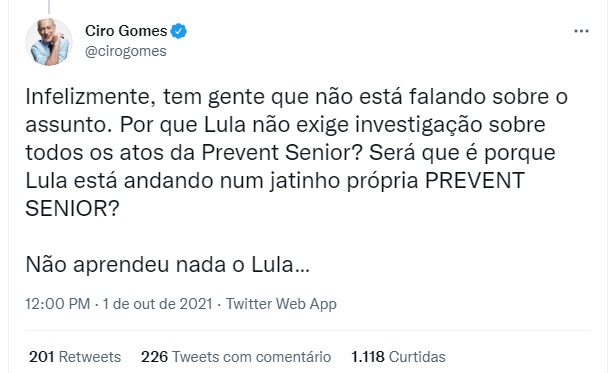 Ou que sentido teriam ataques como este do Ciro Gomes? O Governo é de Bolsonaro, mas Ciro cobra medidas…de Lula.
