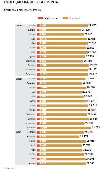 Isso não significa que a cidade esteja em uma situação desfavorável no cenário nacional. O Índice de Sustentabilidade da Limpeza Urbana de 2020, elaborado pelo Sindicato Nacional das Empresas de Limpeza Urbana e pela PwC Brasil para medir o quanto as cidades brasileiras estão adequadas ao Plano Nacional de Resíduos Sólidos por meio de vários indicadores, coloca Porto Alegre em sétimo lugar no ranking dos 107 municípios com mais de 250 mil habitantes. O problema é que o panorama do lixo no Brasil é muito ruim, com algo próximo a 4% do volume produzido direcionado para reciclagem. Na Europa, países ficam acima de 50%.