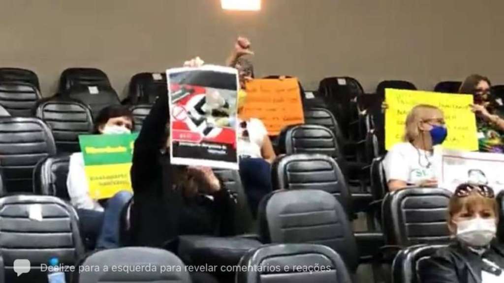 Conflito ocorreu na quarta-feira, durante sessão que analisava o passaporte vacinal, e teve início pelo surgimento, entre os manifestantes, de um cartaz com uma suástica nazista