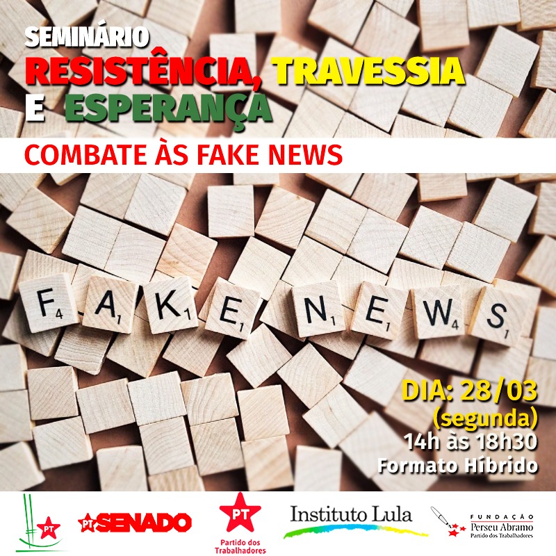 Gostaríamos as/os companheiras/os para participarem dos Seminários Temáticos CT&I e TICs, na manhã do dia 28/03, e Combate às Fake News, na tarde também de 28/03, conforme programação. Saudações petistas!