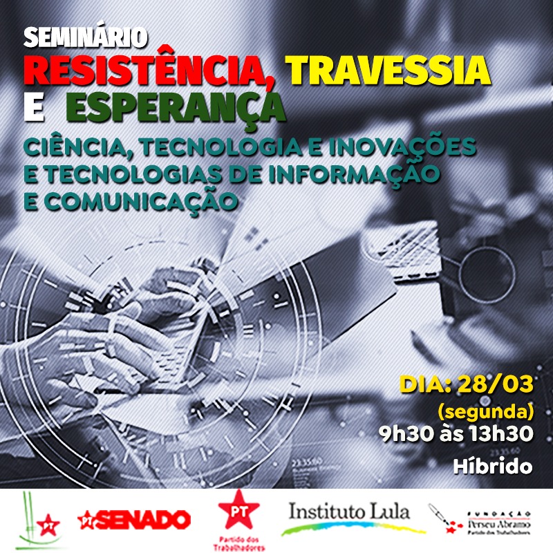 Gostaríamos as/os companheiras/os para participarem dos Seminários Temáticos CT&I e TICs, na manhã do dia 28/03, e Combate às Fake News, na tarde também de 28/03, conforme programação. Saudações petistas!
