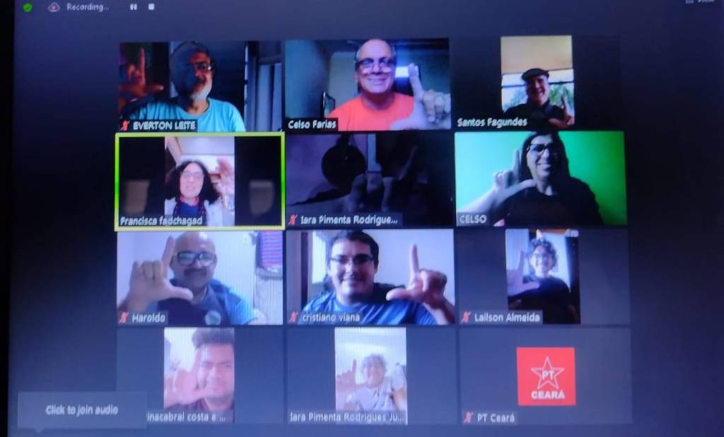 A setorial das pessoas com deficiência do Partido dos Trabalhadores do Ceará, teve a honra de ter a presença do ilustre Sr. Santos Fagundes, assessor do Senador Paulo Paim PT/RS juntamente com nossa conterrânea e militante do Movimento Nacional das PCDs, Francisca das Chagas, como palestrantes na nossa reunião virtual, que foi um sucesso! Discutimos a conjuntura local e nacional do nosso país e com a esperança de voltar a ser feliz com Lula Presidente! Saíram alguns encaminhamentos e o mais importante foi de criar um comitê nacional das pessoas com deficiência para unir mais forças e derrotar o fascismo!