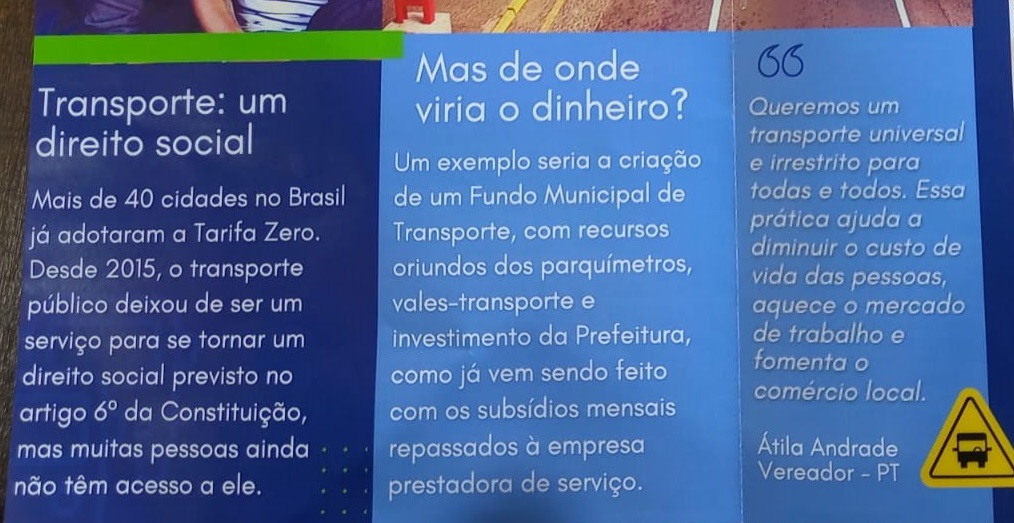 O Vereador Atila Andrade tem sido um dos defensores da Tarifa Zero como alternativa para a crise do Transporte Público.