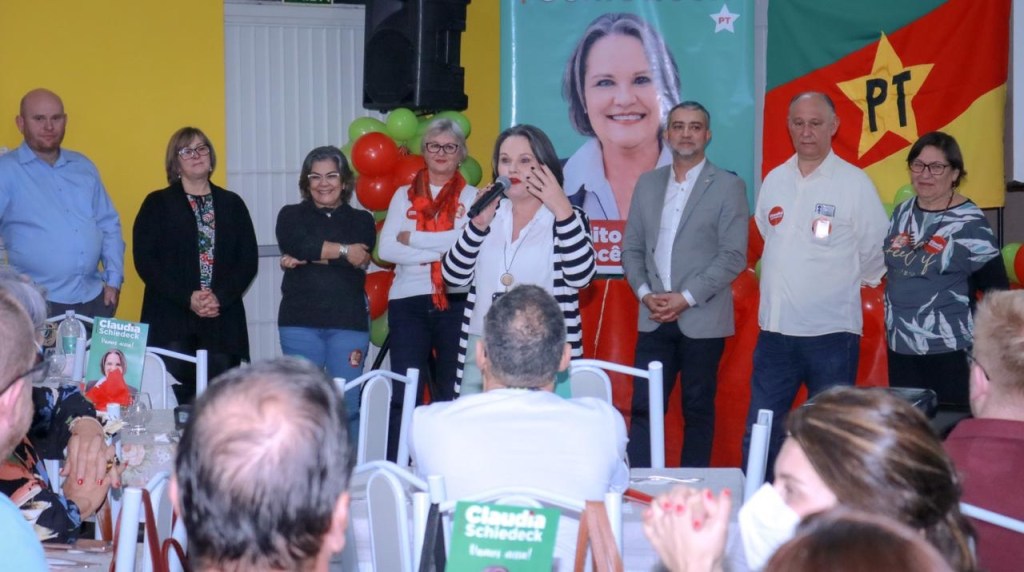 Em seu discurso, Claudia agradeceu a todos que a apoiaram e ajudaram a tornar possível a sua pré-candidatura. Ao lado de sua mãe, Selma Schiedeck, professora aposentada, disse que tem uma história especial com todas as pessoas que participaram do momento e a região.