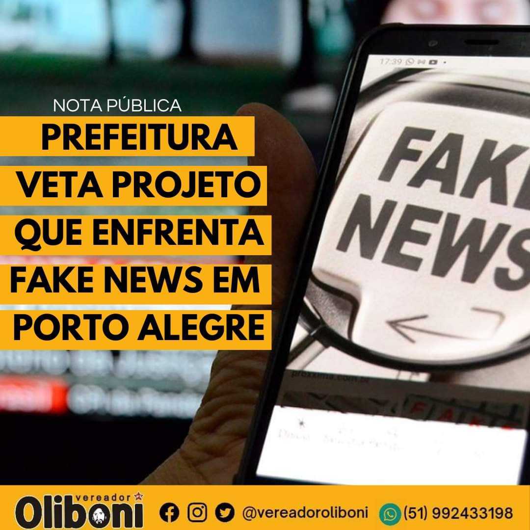 A Câmara Municipal aprovou e o governo encabeçado por Sebastião Melo e Ricardo Gomes vetou projeto de nossa autoria que busca enfrentar através de ações educativas e de conscientização sobre a produção e disseminação de Fake News em Porto Alegre. Nas razões alegadas para o veto, em documento assinado pelo vice-prefeito, confunde o que seria liberdade de expressão com a criação de notícias falsas que atingem pessoas e instituições. Alega que o enfrentamento às notícias falsas seria inconstitucional. Cita, em desarmonia com recentes decisões e investigações no âmbito do Superior Tribunal Federal (STF) sobre o tema, argumentação que em nada reflete sobre a matéria. Ainda, entende que não deve ser papel da Administração Pública promover campanhas periódicas sobre a necessidade de checagem de fontes confiáveis de informação como se não fosse o Município ou qualquer órgão público responsável pela construção de uma sociedade onde a verdade prevaleça sobre quem propaga mentiras, seja em benefício pessoal, seja para gerar o ódio e atacar pessoas e instituições.