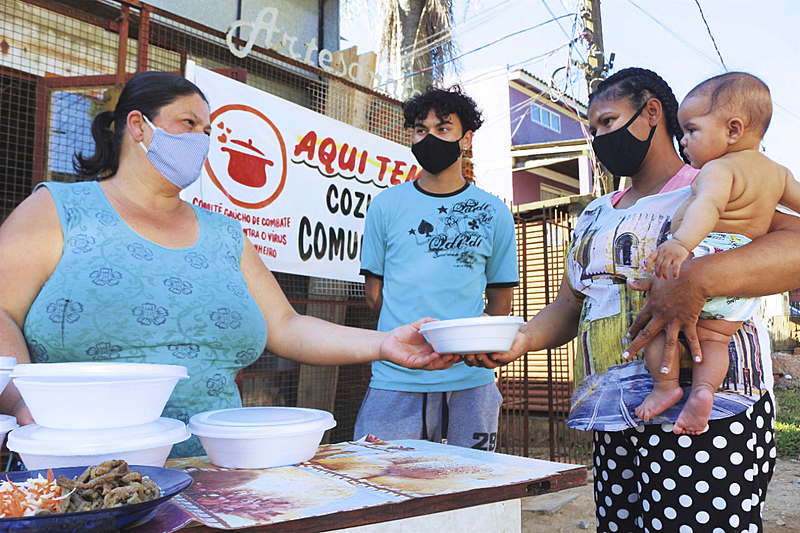 Da mesma forma, outras elas e outros eles, lutadoras-es, sonhadoras-es, militantes das boas causas cuidam do povo das periferias e comunidades pobres, em tempos de pobreza, miséria, desemprego e, principalmente, muita fome. São os Comitês Populares contra a Fome, as Cozinhas Solidárias e Comunitárias, nas vilas da Lomba do Pinheiro, nas vilas da Grande Cruzeiro, e em diferentes comunidades de muitas cidades, mais as ações do CONSEA/RS, de movimentos sociais, do movimento sindical, de pastorais de diferentes igrejas, na ausência quase total ou fim de políticas públicas de soberania, segurança alimentar e nutricional, procuram prover o que Estado e governos não providenciam ou garantem.