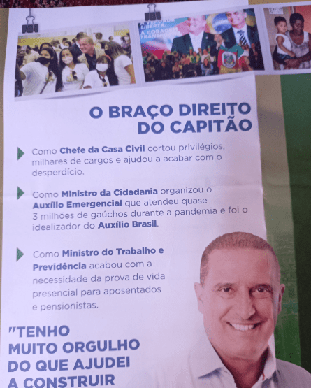 Resta saber se a gauchada vai votar no braço direito, no braço esquerdo ou vão votar pra colocar o Rio Grande no caminho certo, com Lula! Aí o voto não é nem no Braço Direito e nem no Esquerdo do Capitão. É no filho do Adão!